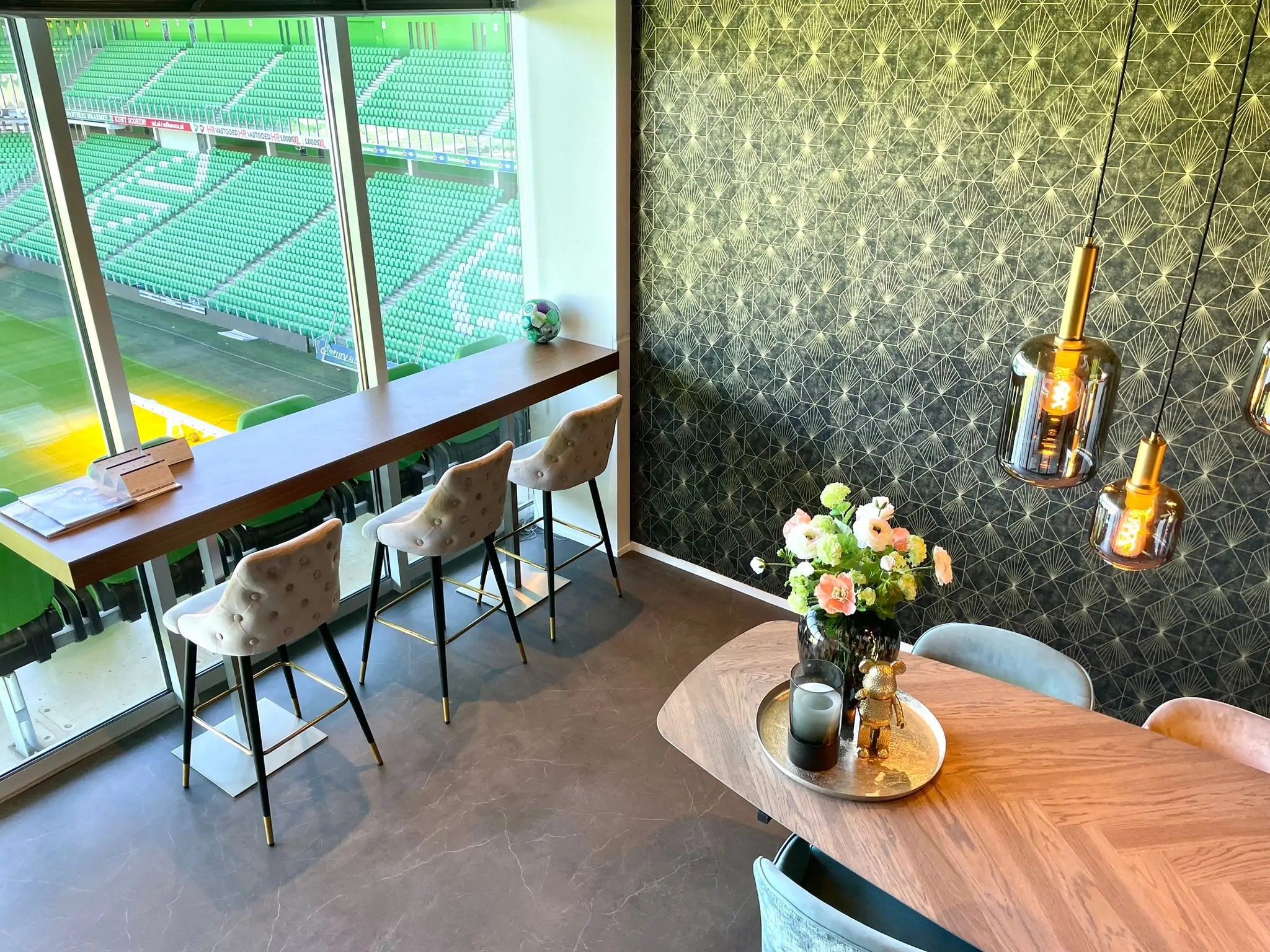 Bei Bosma Wonen legen wir weiterhin Wert auf die Schaffung einzigartiger Wohnumgebungen. Ob Privatwohnung oder Geschäftsraum wie diese gemeinsame Skybox – wir sind Ihr zuverlässiger Partner für die Inneneinrichtung. Kontaktieren Sie uns und erfahren Sie, wie wir Ihr Wohn- oder Arbeitsumfeld auf das nächste Level heben können.